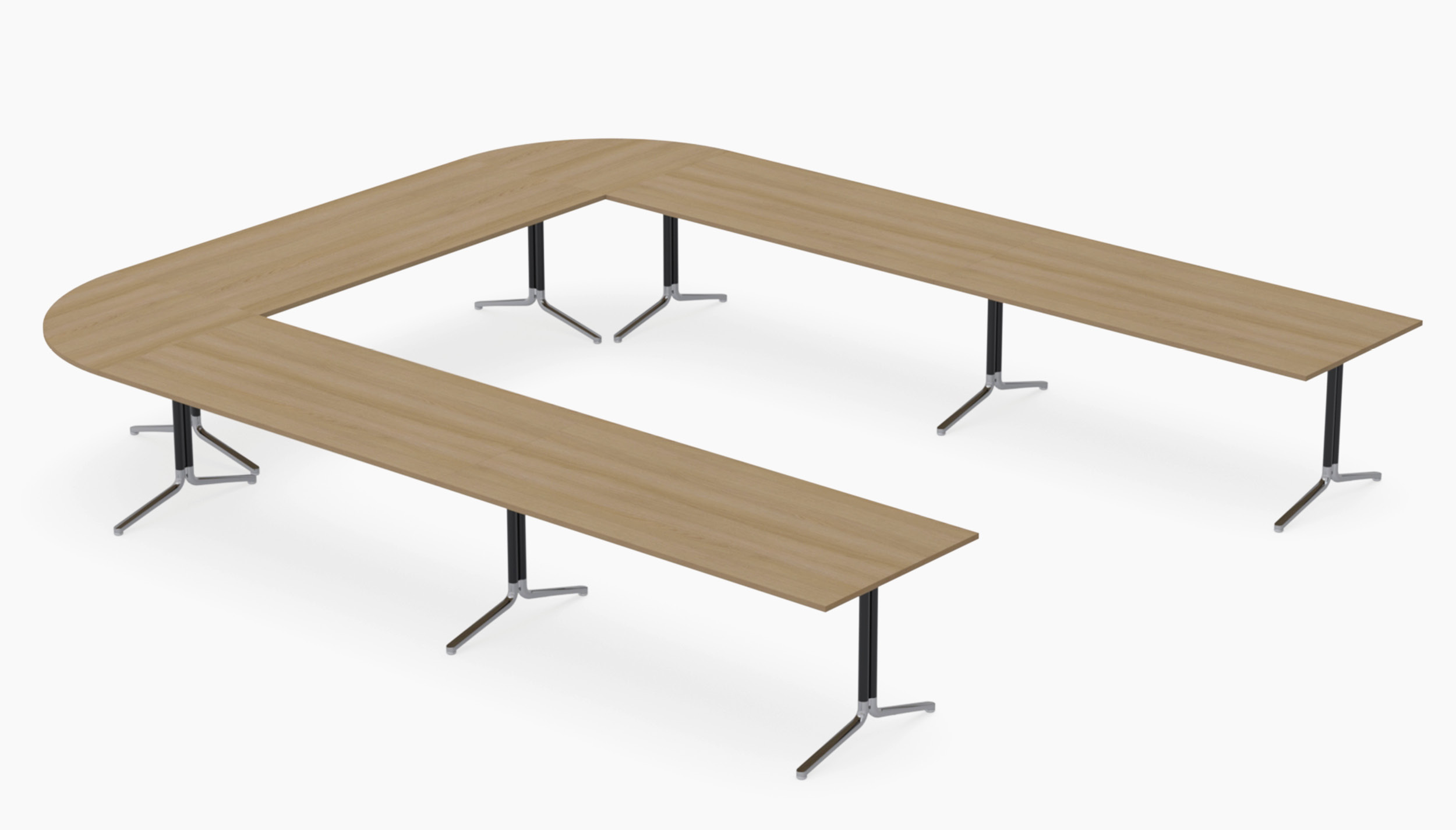 At first glance you do not see the wide range of possibilities. But its durable material, the design and the craftsmanship with which Temo is manufactured give him that little bit extra. This makes Temo a stylish conference table which stands out from the crowd, and the well thought out conference set-up are above average. Temo has a wide variety of shapes and sizes. From conference table to fliptop table and from high table to coffee table.